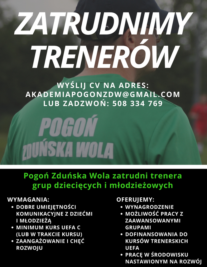 Zainteresowani ofertą szkoleniowcy mogą wysyłać CV na mail: akademiapogonzdw@gmail.com lub skontaktować się z koordynatorem Akademii Wojciechem Snowarskim pod numerem: 508 334 769.