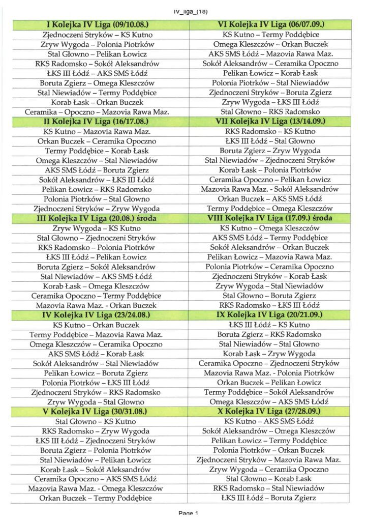 9/10 sierpnia rozegrana zostanie pierwsza kolejka nowego sezonu Betcris IV ligi łódzkiej. Znamy już pary inauguracyjnej kolejki oraz drugiej serii spotkań, która zaplanowana została na 16/17 sierpnia. W pierwszej kolejce dojdzie do dwóch meczów derbowych. W Łobudzicach, w Ośrodku przy Patykach Korab Łask podejmie GKS Buczek, a w Łodzi ŁKS III zmierzy się z AKS SMS. Poniżej zestaw par: