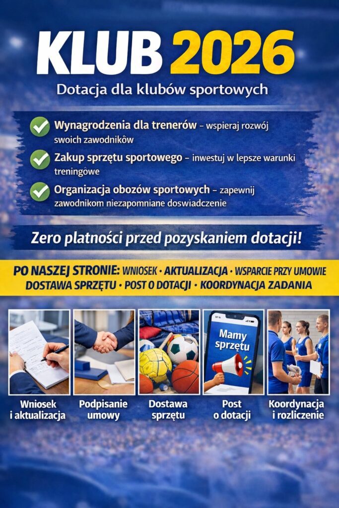2 marca rusza nabór w Rządowym Programie KLUB 2026, więc to już najwyższy czas, aby przygotować się do złożenia wniosku. Radzimy nie zwlekać – zgłoszenia wysłane na ostatnią chwilę nie gwarantują możliwości przygotowania wniosku. Marka KEEZA chce ułatwić Państwu przygotowanie dokumentów, dlatego we współpracy z naszym partnerem – dotacjedlasportu.pl – oferuje kompleksowe wsparcie w przygotowaniu i obsłudze wniosku.